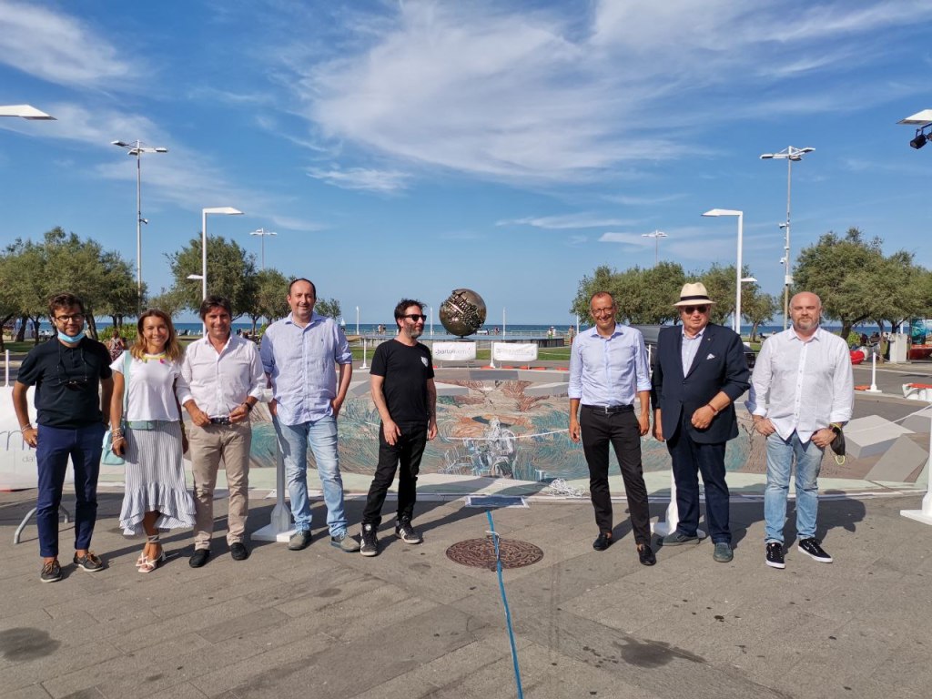 L’opera si potrà ammirare infatti in occasione di “Candele sotto le Stelle”. «Sarà una suggestiva cartolina della città – ha spiegato il coordinatore eventi del Comune di Pesaro Massimiliano Santini – realizzata da uno dei più importanti artisti della scena nazionale ed internazionale. Un lavoro frutto di sinergie del territorio, ringraziamo Riviera Banca e Bartoli Vernici snc per aver voluto e contribuito fattivamente alla realizzazione». Presente anche Fausto Caldari, presidente RivieraBanca: «Un’opera estremamente
