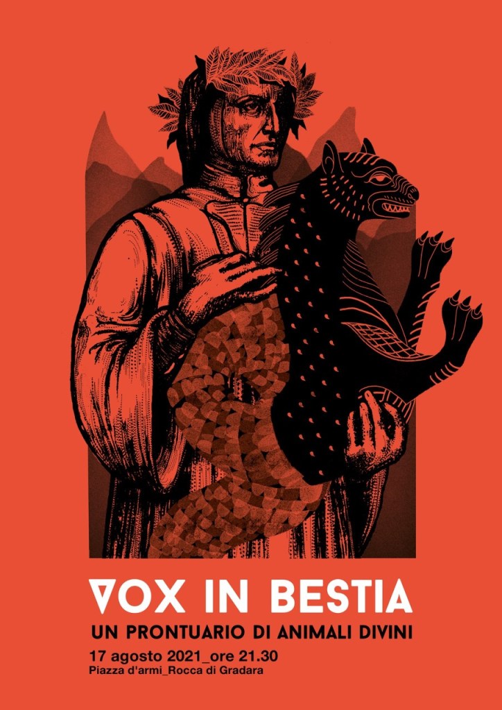 Si comincia quindi martedì 17 agosto alla Piazza D’Armi del Castello di Gradara con “Vox in Bestia. Un prontuario di Animali Divini”, un omaggio a Dante attraverso gli animali della Divina Commedia, progetto della cantante Laura Catrani, voce solista, con Tiziano Scarpa, narratore e autore dei testi, Peppe Frana, chitarra elettrica, e con le video animazioni di Gianluigi Toccafondo e le musiche di De Rossi, Franceschini, Solbiati, De Machaut, Ciconia e Anonimo. Lo spettacolo nella sua tournée estiva ha già toccato alcuni dei principali festival italiani, come Ravenna Festival, Sagra Malatestiana di Rimini, Cantiere Internazionale d’arte di Montepulciano, e molti altri.