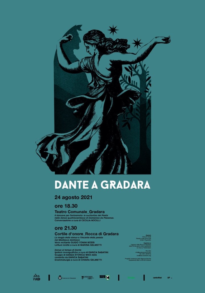 Giornata dedicata alla Poesia e alla Danza ai tempi di Dante Alighieri curata da WKO-ADA Divisione Danza della WunderKammer Orchestra. Si comincia alle 18:30 al Teatro Comunale di Gradara con “Il danzare per fantasmata: la auctoritas del Poeta nella danza quattrocentesca di Domenico da Piacenza”, conversazione a cura di Cecilia Nocilli docente di Storia della Musica, Notazione Musicale e Analisi Musicale nel Departamento de Historia y Ciencias de la Música presso la Universidad de Granada (Spagna).