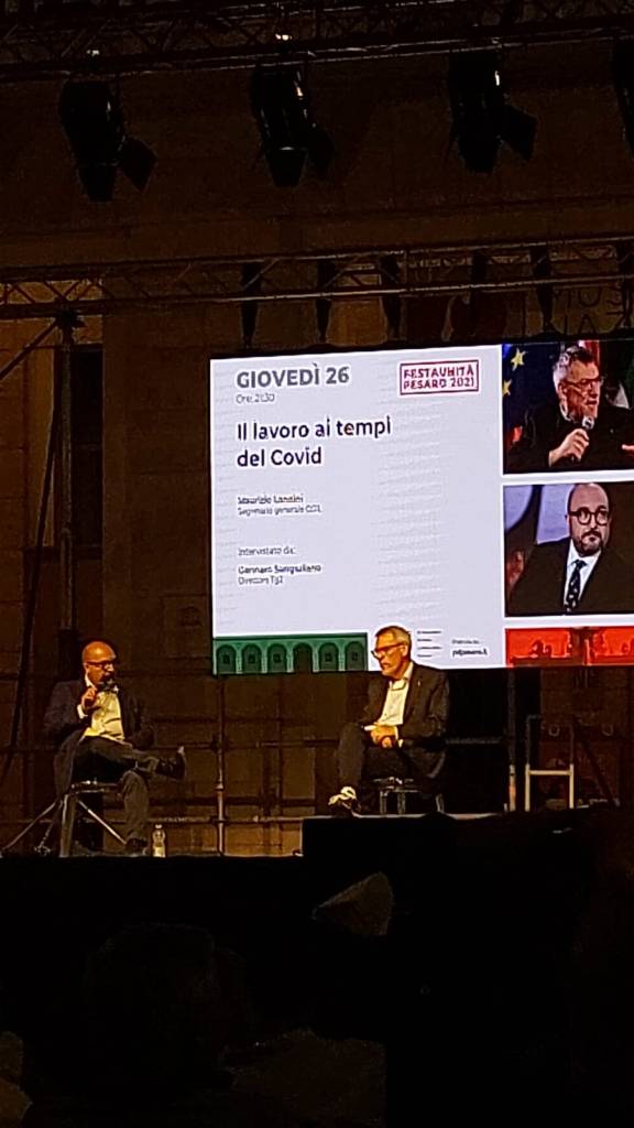 PESARO – Il lavoro ai tempi del Covid è il titolo dell’incontro di ieri a Pesaro, alla festa dell’Unità, con Maurizio Landini, segretario generale nazionale della Cgil, intervistato dal direttore del tg2 Gennaro Sangiuliano.