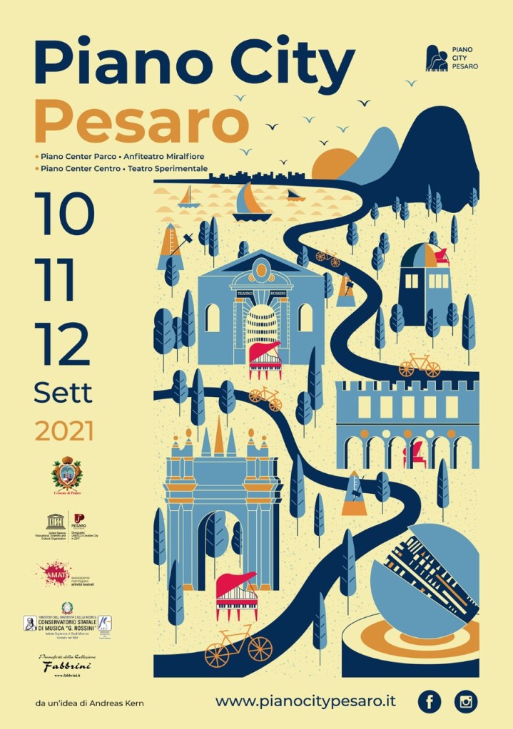 Piano City è un festival internazionale di pianoforte che nasce dall’idea del pianista tedesco Andreas Kern a Berlino per poi diffondersi in tante città in Europa (anche una edizione a New York) riscuotendo grande successo per la capacità di coinvolgimento del pubblico. Arriva in Italia 10 anni fa a Milano per poi diffondersi a Palermo, Napoli, Pordenone, Trieste e da quest’anno anche Pesaro e Lecce. Decisamente speciale il valore dell’edizione di Pesaro perché è la prima che si realizza dopo lo stop allo spettacolo dal vivo causato dall’emergenza sanitaria.