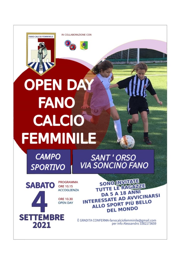 Per la nuova Società Fano Calcio Femminile è già tempo di mettersi al lavoro, e se da una parte è già partita la preparazione della squadra di calcio a 5, che parteciperà al prossimo campionato di serie C, sabato 4 settembre nella mattinata è in calendario alle ore 10.15 l’accoglienza delle giovane atlete, e alle 10.30 il vero e proprio Open Day.