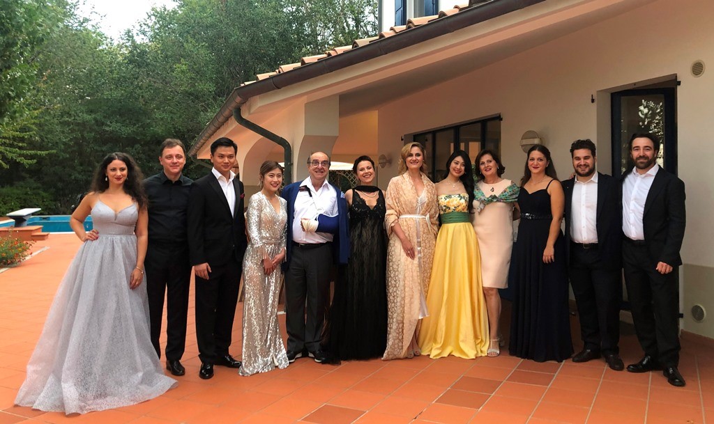 I cantanti selezionati durante il concerto a Villa Pavarotti, serata conclusiva del corso di alto perfezionamento