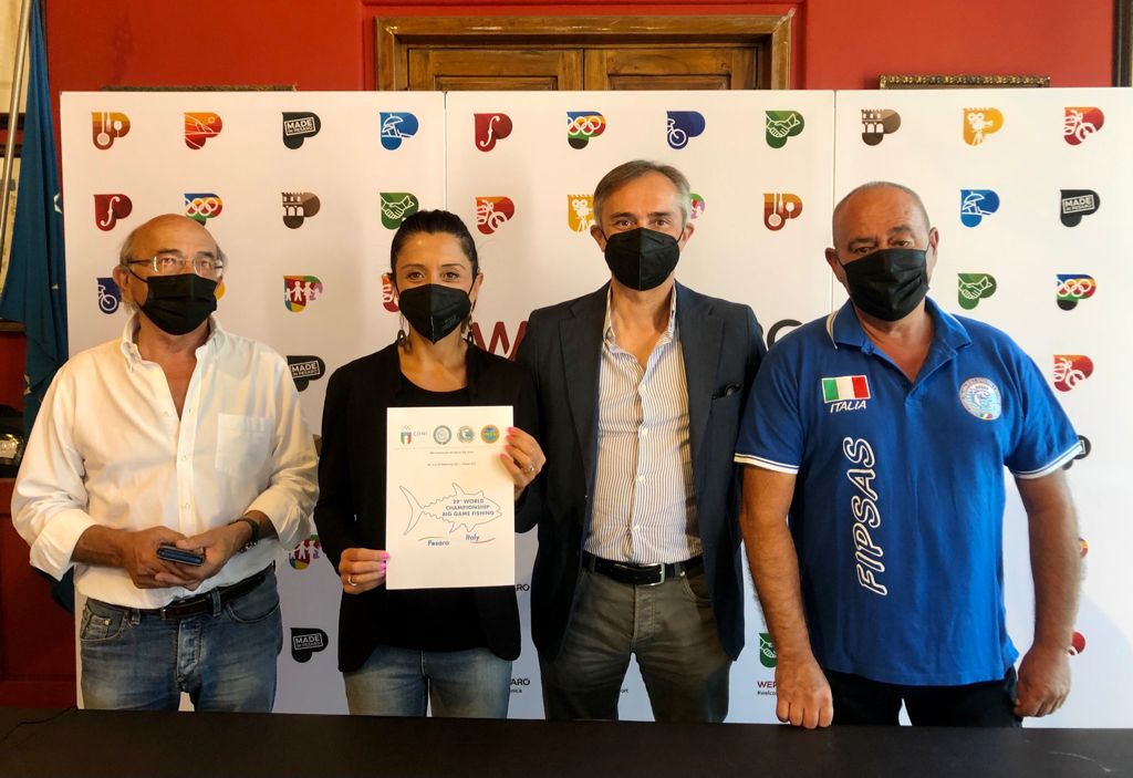 Si terranno a Pesaro dal 18 al 25 settembre con l’organizzazione del Club Nautico i campionati del mondo di Pesca sportiva disciplina Big game specialità Drifting.Vi parteciperanno 16 equipaggi provenienti da 9 nazioni: Italia, Croazia, Principato di Monaco, Slovenia, Francia, Messico, Germania, Portogallo e Spagna. Per l’Italia sarà presente anche il pesarese Marco Eusebi. L’evento è stato presentato questa mattina nella Sala Rossa del Comune di Pesaro. Sono intervenuti l’assessore comunale allo Sport Mila Della Dora, il presidente del Club Nautico Francesco Galeppi e il commissario tecnico della nazionale italiana, l’altro pesarese Mirko Eusebi. Presente anche il vicepresidente del Club Nautico Raniero De Angelis.