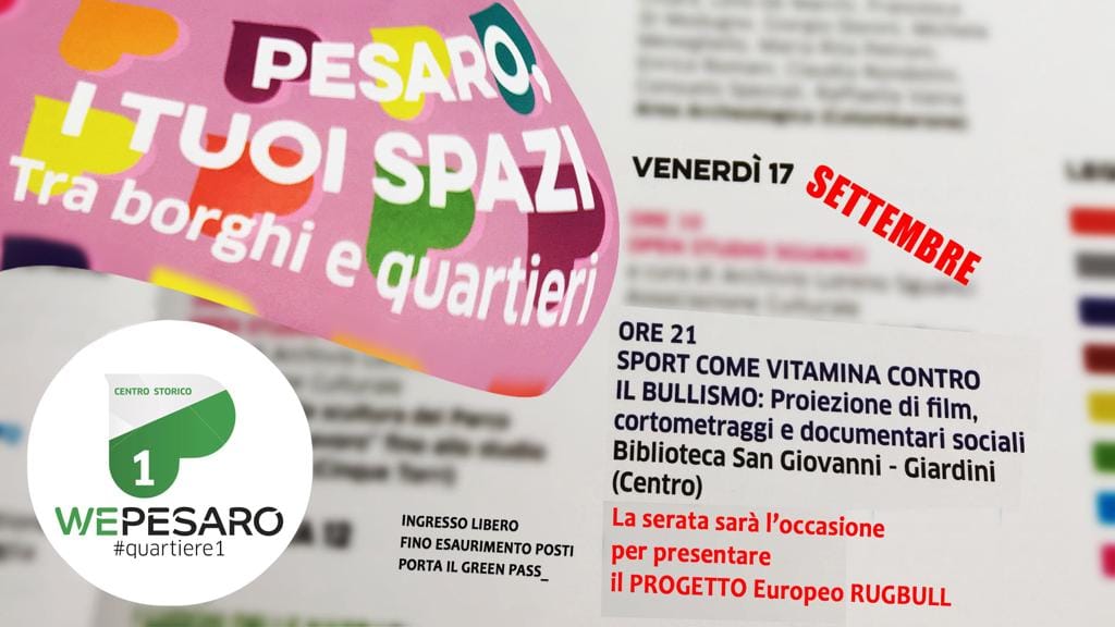 Si chiude con la proiezione di animazioni e cortometraggi il ciclo di iniziative di “Rugbull: promoting rugby in schools as anti-bullying vitamin”, il progetto promosso dal Comune di Pesaro e rivolto ai giovani e alle famiglie. L’appuntamento finale è in programma domani, venerdì 17 settembre, ore 21 (ingresso libero e gratuito), nei giardini della Biblioteca San Giovanni (via Massimi, centro storico).