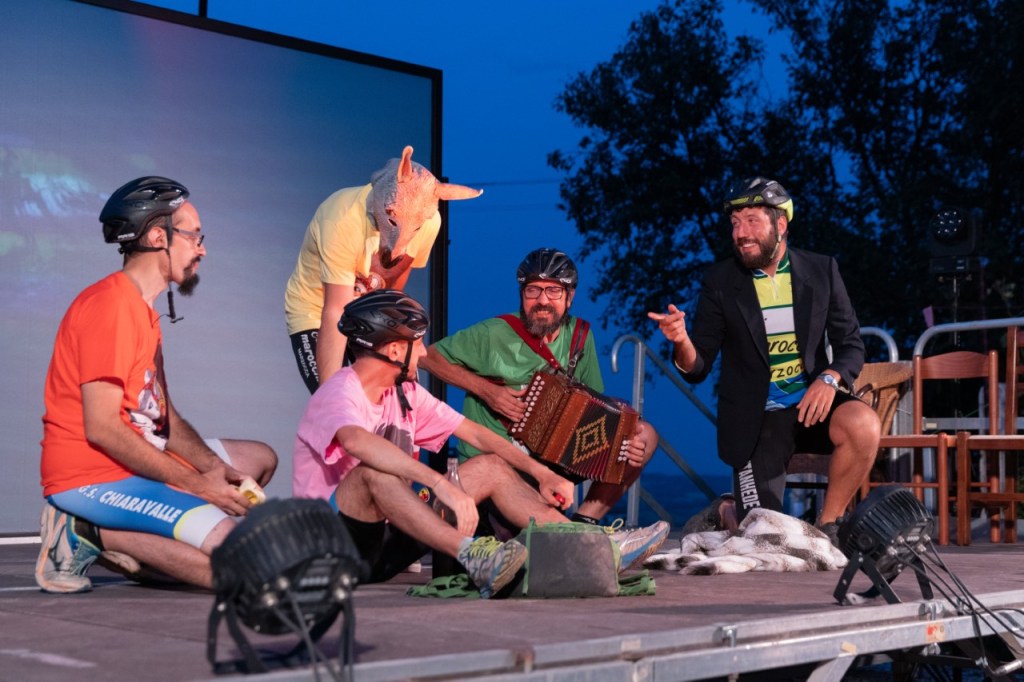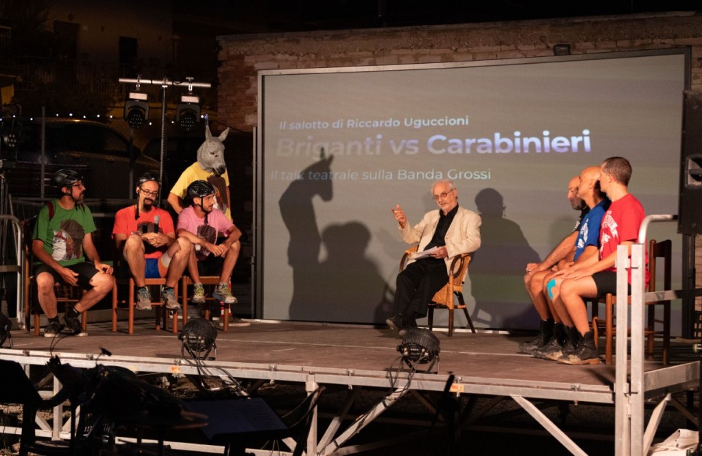 Alle 19 e alle 20.15 torna poi l’appuntamento principale, lo spettacolo “Quando la banda passò”, questa volta di scena nella frazione di Ripalta (in caso di pioggia presso il Teatro del Trionfo di Cartoceto). Il divertente talk teatrale scritto e diretto da Filippo Paolasini degli Asini Bardasci, nasce dal lavoro che la compagnia ha sviluppato sul territorio sulle tracce della Banda Grossi con il supporto fondamentale dello storico Riccardo Paolo Uguccioni. Lo spettacolo offrirà al pubblico la possibilità di conoscere le vicende storiche che hanno interessato i due comuni e, al contempo, fornirà una prospettiva nuova sulle storie narrate facendo parlare i personaggi protagonisti quasi fossero in un talk show televisivo. Ad intervallare e commentare i momenti, sul palco, una piccola orchestra formata dal Rossini Saxophone Quartet con l’aggiunta delle percussioni.