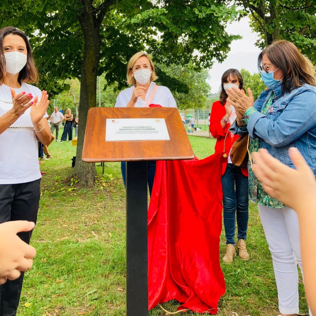 Nei mesi scorsi le bambine e i bambini della primaria Papa Giovanni XXIII hanno realizzato un progetto dedicato alla figura di Maria Ceccarini proposto dal quartiere e curato dai docenti: «È proprio per rispondere alla richiesta dei piccoli, della scuola e del Consiglio di quartiere che, come Amministrazione, abbiamo deciso di dedicare questo accogliente angolo verde della città a una donna di cultura, grande benefattrice». Maria Boorman Wheeler in Ceccarini (1840 – 1903) è stata «una “donna di potere” collaborativa che seppe valorizzare il lavoro di tecnici e professionisti. Una viaggiatrice generosa di spirito, di accoglienza, di valori e di esperienze che, al suo ritorno in patria accoglieva grandi personalità. Le attrici, i poeti e drammaturghi che frequentarono la sua villa, calamitati dalla sua vivacità intellettuale, erano pronti a condividere con lei pensieri e citazioni, poi raccolte e ordinate nel suo “Friend’s Book” (Libro degli Ospiti)» ha sottolineato Della Dora nel ricordare anche l’amore per i bambini di Ceccarini che, non avendone di suoi, decise di adottare l’orfana Emilia Tonsini, che diverrà sua erede universale e continuatrice delle iniziative di solidarietà. «Un esempio cui i piccoli ci auspichiamo possano ambire e ricordare ogni volta che giocheranno in questo parco».