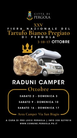 Torna con la 25esima edizione della Fiera nazionale del tartufo bianco pregiato di Pergola, il tradizionale appuntamento per i camperisti, organizzato dalla Pro Loco.