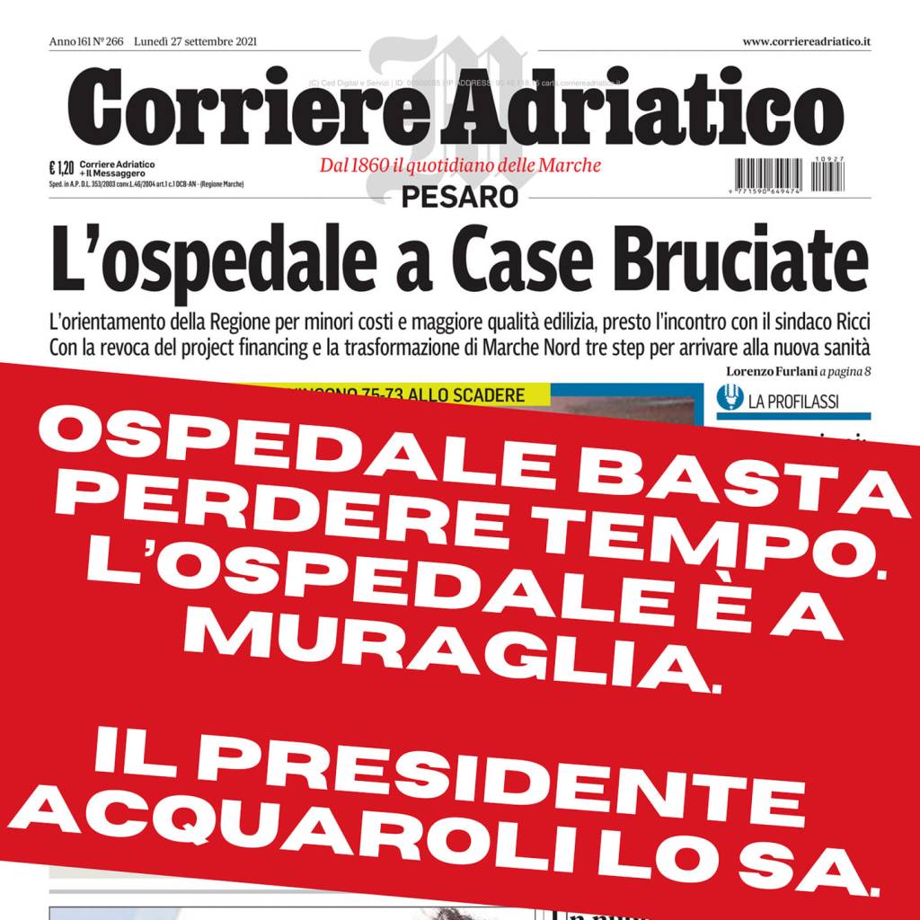 Il sindaco Matteo Ricci interviene sull’Ospedale Nuovo, «per evitare fraintendimenti, ricordo che il presidente Francesco Acquaroli sa da mesi che le tre precondizioni per una eventuale accordo sono tre: che l’ospedale nuovo si faccia velocemente a Muraglia, località scelta dai sindaci nell’area vasta provinciale. Poi che il progetto sia modulare, in modo tale da non compromettere eventuali futuri ampliamenti».