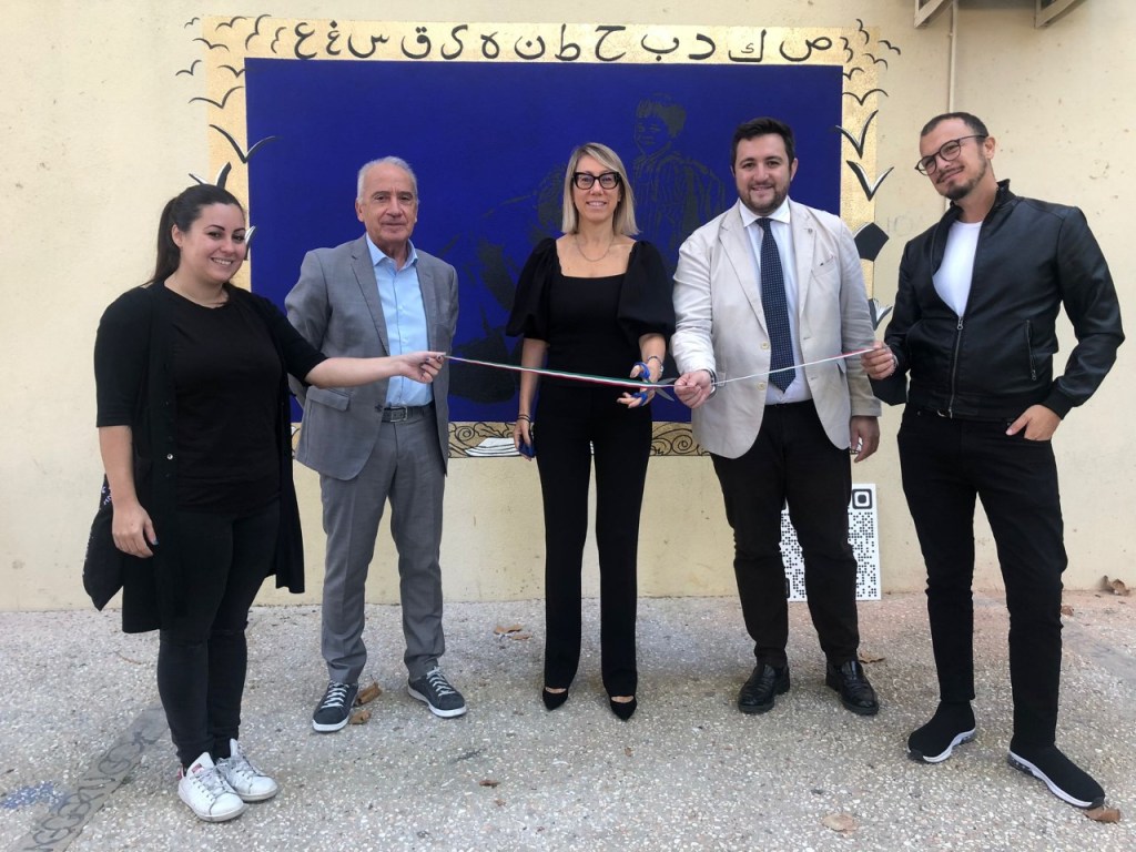 Il murale – ideato e realizzato da Luana Colocci e Patrizia Magnani di Ittico ArtLab – è stato pensato come un quadro appeso in un museo, in cui figurano libri da cui partono volute, che si trasformano in rondini. Tratti intervallati a caratteri della lingua araba «per creare un’alternanza di elementi della cultura occidentale e araba. Un messaggio di pace che acquisisce ancor più valore perché riportato nella parete della biblioteca San Giovanni, l’edificio simbolo della cultura della città» conclude Murgia.