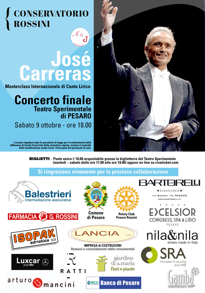 grande tenore Josè Carreras presso il Conservatorio Rossini di Pesaro.