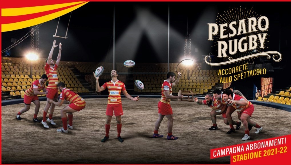 Un po’ domatori, un po’ leoni, un po’ acrobati e un po’ giocolieri. Ma all’interno di un campo di rugby. Si presentano così i giocatori della Fiorini Rugby Pesaro nella campagna abbonamenti della stagione 2021/22 firmata dall’agenzia di comunicazione Simbiosi. “Accorrete allo spettacolo” recita il claim, nell’augurio che possano essere sempre più le persone che sceglieranno di seguire la squadra nel campionato di serie A che inizierà in trasferta il 17 ottobre a Civitavecchia, per poi giocare la prima partita casalinga il 24 contro il Romagna.
