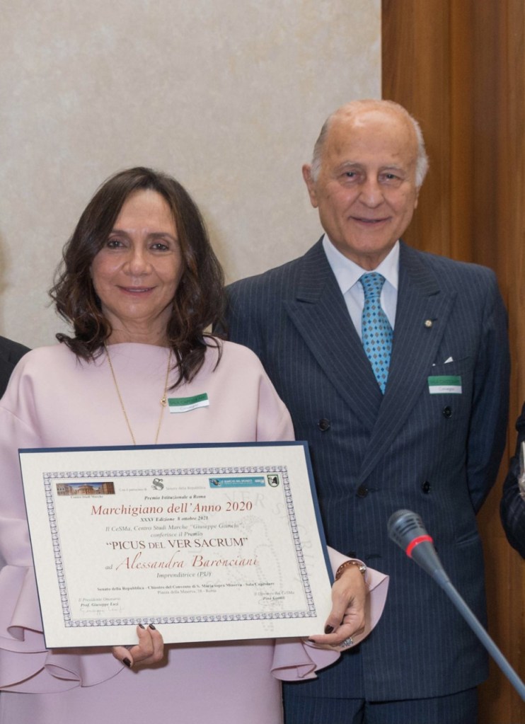 Ha avuto luogo nella solenne Sala Capitolare del Senato della Repubblica l’annuale cerimonia della consegna degli attestati “Marchigiano dell’anno” promossa dal Centro Studi Marche (Ce.S.Ma.) intitolato al compianto scienziato marchigiano Giuseppe Giunchi, medico di Papi e capi di Stato. Il Centro ha sede a Roma ed ha lo scopo di valorizzare le ricchezze culturali della Regione Marche in tutte le sue espressioni: artistiche, letterarie, musicali, scientifiche ed imprenditoriali. La pesarese Alessandra Baronciani è stata insignita del prestigioso titolo con la seguente motivazione: