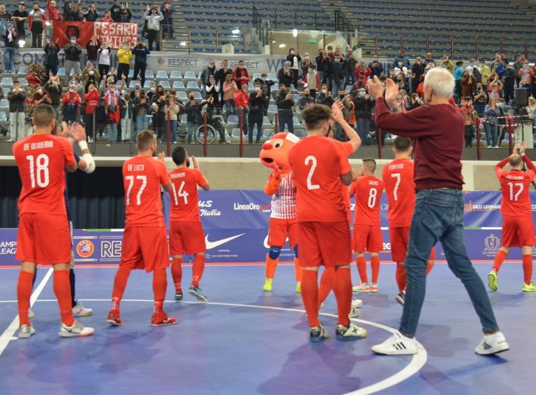 RIMINI – L’Italservice Pesaro c’è, eccome se c’è. I biancorossi schiaffeggiano la sconfitta dell’esordio e si prendono i tre punti contro il Plzen. De Oliveira, due volte Canal e Fortini firmano il 4-2 contro i ciechi.