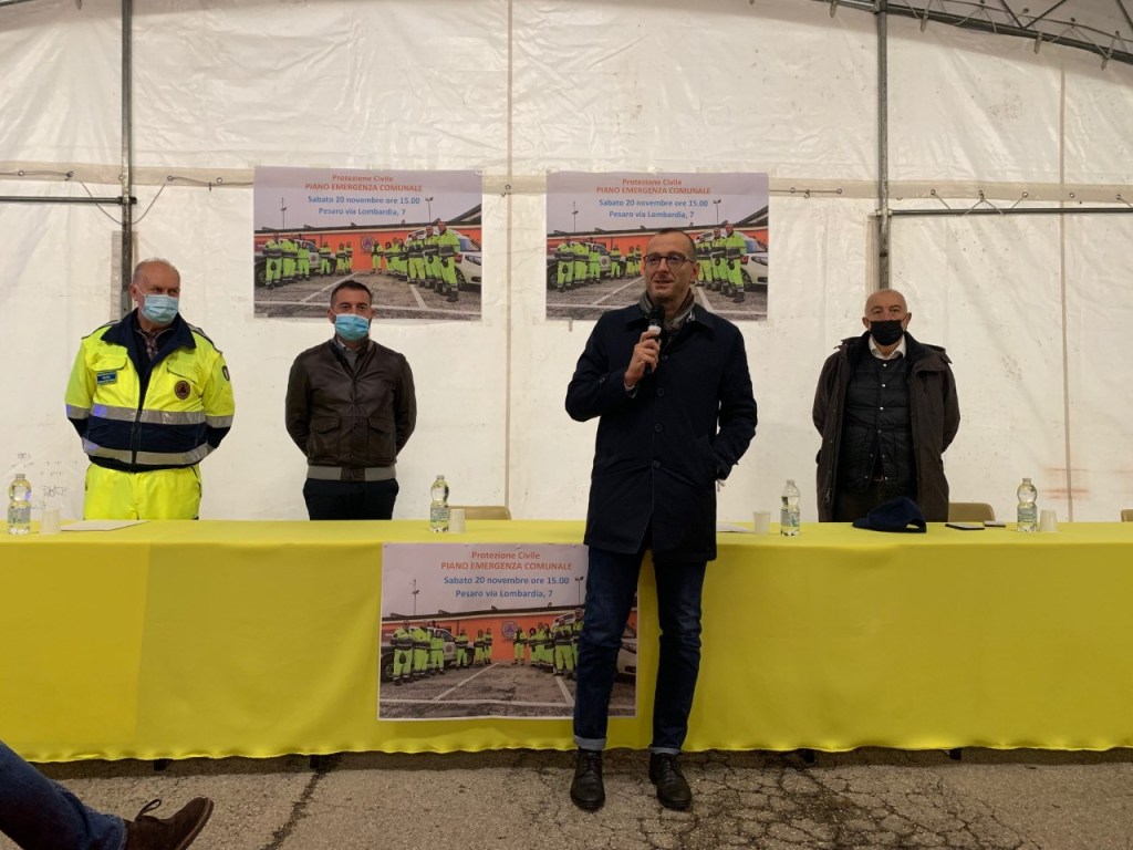 Un momento che si è svolto nella tensostruttura allestita davanti ai locali di via Lombardia 7 messi a disposizione dall’Amministrazione comunale e destinati ad accogliere i 150 volontari della città a cui oggi è stato mostrato il nuovo Piano. «Ringrazio le autorità – ha sottolineato Enzo Belloni, assessore all’Operatività – e i volontari presenti oggi a questa occasione che ci consente di inaugurare la nuova sede della Protezione civile. Allestiti mesi fa, questi spazi hanno accolto un picco di iscritti e di lavoro mai registrato finora a causa della pandemia. Un evento grave che ha permesso però di convogliare l’entusiasmo di tanti pesaresi nelle numerose azioni fatte dalla Protezione civile». Per dare risposta a questa energia, «stiamo lavorando per modificare il regolamento e consentire le iscrizioni al Gruppo comunale di Pesaro ai maggiori di 16 anni (attualmente è consentita dopo i 18). La modifica permetterà ai giovani di fare qualcosa di costruttivo e di far proprio quello spirito di comunità che caratterizza la Protezione civile».