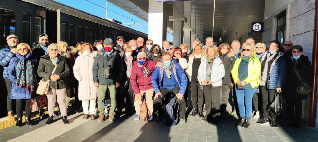 Il giorno successivo il gruppo di pensionati pesaresi è salito sul Treno storico della Transiberiana d’Italia della Fondazione Ferrovie dello Stato; un’escursione nel cuore dell’Abruzzo e del Molise tra parchi e riserve naturali su una ferrovia tortuosa e panoramica che attraversa montagne e strette gole.