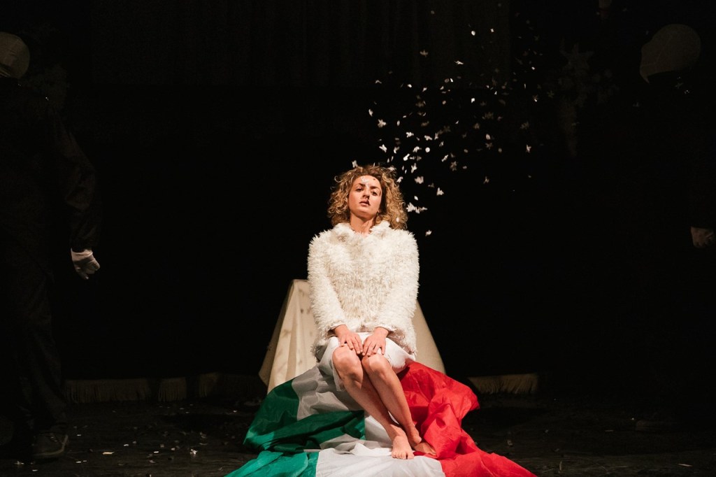 Le schermaglie liriche dei personaggi genettiani Arcibaldo, Virtù, Villaggio, Neve, La Corte trovano riflesso in scene complementari, concepite come quadri di Provincia, nei quali gli attori assumono le funzioni iconiche di maschere d’attualità. Non uno spettacolo documentativo, quanto piuttosto, in linea con la poetica della compagnia, una riflessione intimista, onirica e politica nel senso ‘drammatico’ del termine, vale a dire di contrapposizione di opinioni e deliri, di azioni e visioni, di tragico e farsesco – insomma, un canto d’amore.
