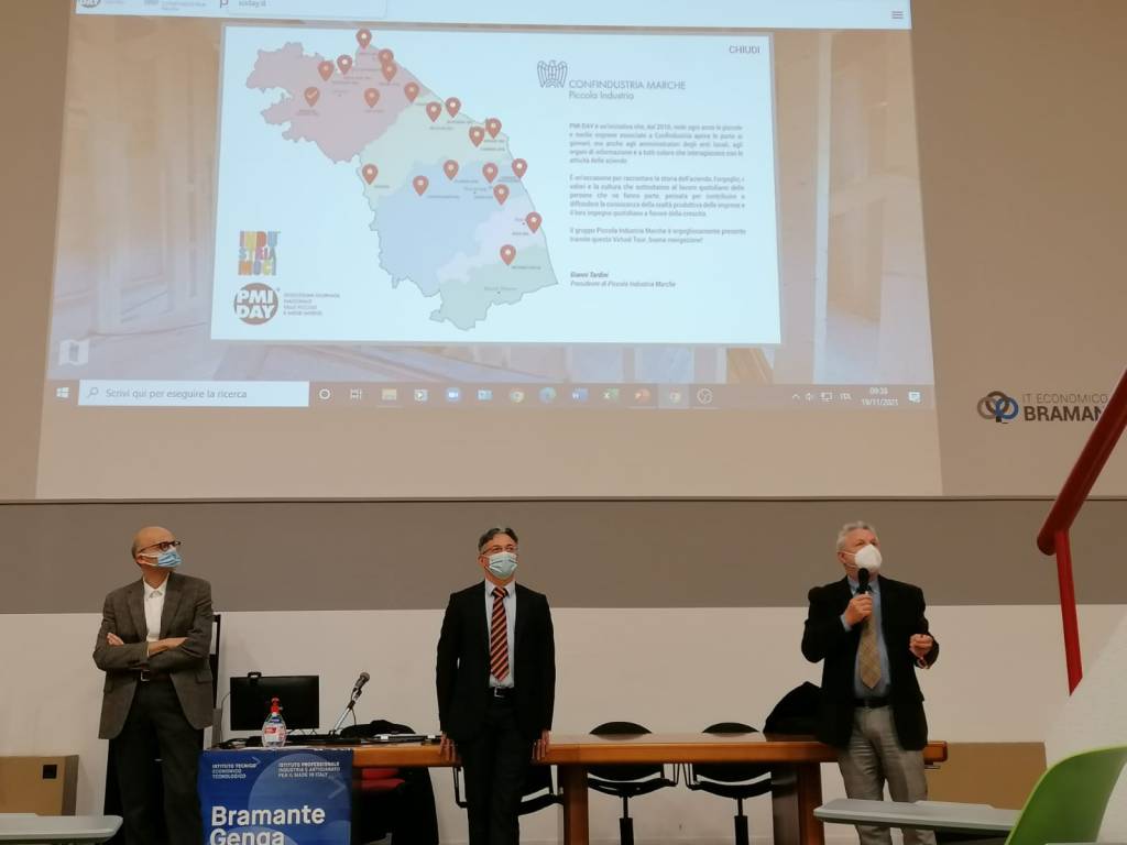 Oltre 1.700 studenti di dieci istituti superiori della provincia di Pesaro Urbino sono stati coinvolti nel PMI DAY 2021, iniziativa promossa a livello nazionale da Piccola Industria di Confindustria con il sostegno del ministero degli Affari Esteri, del ministero dell’Istruzione e della Camera di Commercio delle Marche, che proseguirà fino al prossimo mese di gennaio. Particolarmente nutrito il numero delle aziende che hanno aperto le porte ai ragazzi: Bp Cube, Catria Confezioni, Isopack Adriatica, Lc, Lisa Group, Cantiere Rossini, Luzi, Marche Multiservizi, Megabox, Omag, Pedini, Sd, Semar, Stile Ricamo, STR Automotive, System Group, Vetrotec e Wooden Houses.