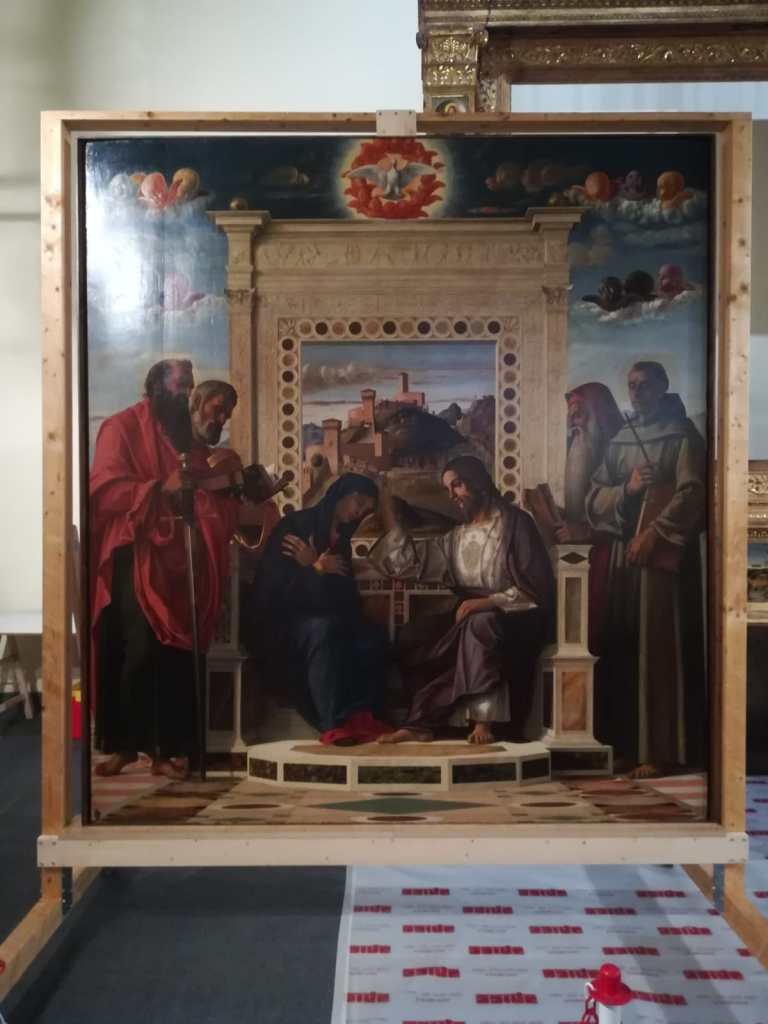 Martedì 7 dicembre l’Incoronazione della Vergine torna nel suo assetto per essere restituita al pubblico dopo la manutenzione straordinaria partita in ottobre: un lavoro articolato condotto all’interno della sala Bellini sotto lo sguardo dei visitatori che hanno potuto assistere al cantiere