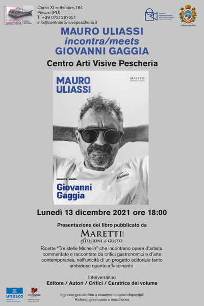 Lunedì 13 dicembre alle 18, il Centro Arti Visive Pescheria accoglie la presentazione della pubblicazione MAURO ULIASSI incontra/meets Giovanni Gaggia, pubblicato da Maretti Editore-collana ‘Effusioni di gusto’. Un incontro ‘speciale’, promosso dalla Fondazione Pescheria Centro Arti Visive in collaborazione con il Comune di Pesaro/Assessorato alla Bellezza e la Mostra Internazionale del Nuovo Cinema di Pesaro.