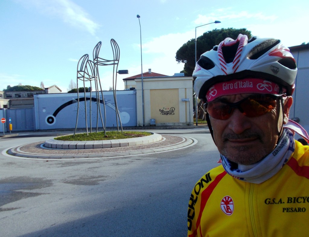 Lo scultore Claudio Ballestracci è invece l’autore dell’opera posizionata nella rotonda dell’incrocio tra via Dario Campana e via Toni, nei pressi dell’ex macello di Rimini. La struttura in metallo ideata, costruita e montata da Ballestracci ne interpreta il cuore della personale ricerca artistica: la luce, l’elettricità, la simbiosi alchemica con elementi composti e naturali. La scultura è un piccolo prato abitato da due letti con le gambe lunghissime, è una camera d’albergo sprovvista di soffitto e pareti, una stanza aperta e ospitale, il soffitto è il cielo sopra Rimini.