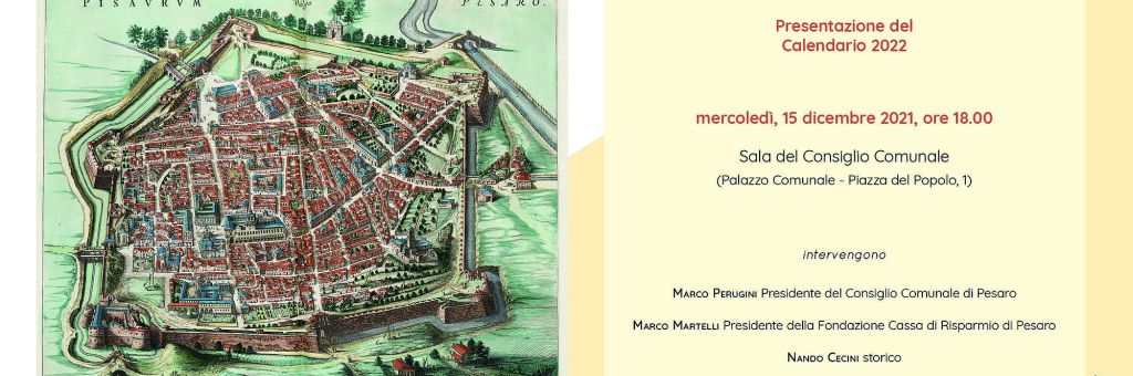 MERCOLEDI’ 15 DICEMBRE 2021, ORE 18,00, presentazione del calendario storico 2022 basato sulla nota pianta di Pesaro edita da Joan Blaue nel 1663 di cui si conserva una riproduzione nella sala del Consiglio Comunale.