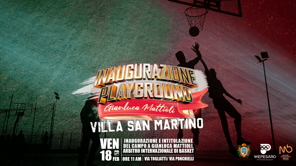 Abbiamo il piacere di invitarvi alla inaugurazione e intitolazione all’arbitro internazionale Gianluca Mattioli, del campo da basket di Villa San Martino in programma venerdì 18 febbraio, ore 11. Alla cerimonia saranno presenti, oltre alla famiglia, le autorità civili e religiose e una rappresentanza di Legabasket, FIP, AIAP.