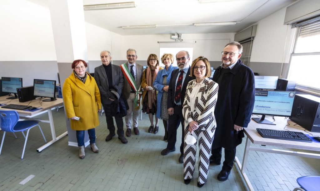 URBANIA – Omnicomprensivo ‘Della Rovere’ sempre più al passo con i tempi. Gli studenti dell’Istituto durantino da oggi potranno contare su 25 computer di nuova generazione, funzionali a tutti i laboratori collegati ai corsi di meccanica. Operazione finanziata dalla Fondazione Cassa di Risparmio di Pesaro (contributo di 26mila e 500 euro, ndr) e supportata, per gli arredi degli spazi di via Leopardi, dalle ditte ‘Eptagroup’ di Lunano e ‘Passeri’ di Urbania. «Stiamo introducendo la robotica e l’automazione. La dotazione arricchisce l’offerta formativa e migliora le competenze professionali. Negli ultimi due anni abbiamo registrato un aumento costante delle iscrizioni: segno del grande interesse per i nostri corsi», sottolinea la dirigente scolastica Antonella Accili, che ringrazia il presidente della Fondazione Carisp Marco Martelli e i membri del consiglio d’amministrazione presenti. All’inaugurazione anche la dirigente dell’Ufficio scolastico provinciale Alessandra Belloni, oltre al sindaco Marco Ciccolini: dal Comune la sponda per gli interventi di manutenzione dell’aula. In attesa del trasferimento della meccanica nel nuovo polo scolastico che nascerà in località Casinina, grazie al progetto della Provincia. Commenta il presidente Giuseppe Paolini: «Una scuola coraggiosa e dinamica, capace di crescere grazie al collegamento con il territorio. Ringraziamo la Fondazione Carisp, il Comune di Urbania e le ditte locali coinvolte in un’azione che testimonia sensibilità verso le nuove generazioni Sul ‘Della Rovere’ la Provincia ha investito fortemente e continuerà a farlo in futuro». Il dirigente dell’Edilizia Scolastica Maurizio Bartoli ricorda gli interventi: «Dai lavori su palazzo Rasi all’acquisto dell’ex convento di Santa Chiara, dove porteremo avanti il recupero della struttura. Proseguiremo con questo approccio anche in futuro».