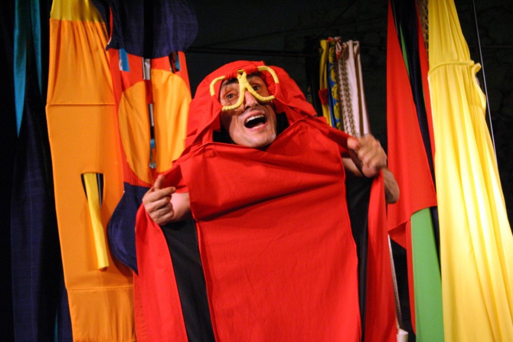 Con una produzione di RezzaMastrella e La Fabbrica dell’attore – Teatro Vascello, a salire sul palco a Urbania con Io, un vero classico dei due artisti, sarà la comicità dissacrante e provocatoria di Rezza che si muoverà sulla scena disegnata e realizzata da Flavia Mastrella: i quadri di scena sono dei teli colorati che si prestano al racconto, completamente coinvolti nell’azione drammaturgica, di Io che cresce e scopre il mondo circondato da personaggi come il radiologo e il piegatore di “lenzora”, fino all’epilogo inatteso. “Anche questo allestimento scenico – si legge nelle note allo spettacolo – si avvale dei quadri di scena o teli intesi come arte. Le scene sono coinvolte completamente nell’azione drammaturgica, la struttura è di metallo sottile, sostiene i teli che, disposti in vari piani, risentono del movimento del corpo… Tutto barcolla. Il colore dei quadri si espande, il metallo si insinua nella stoffa, i cambiamenti di scena frequenti rinnovano in continuazione l’andatura cromatica. Il giallo, il rosso, il blu di vari tessuti e intensità rispondono in modo diverso alla luce che ne esalta inoltre le diversità della trama. I verdi in velo, i bianchi di seta, rete o traforati, compatti o trasparenti coprono il corpo rivelandone i contorni; i quadri mutanti hanno vita breve e vengono abbandonati in terra formando macchie colorate sparse in un mondo buio. La simmetria non esiste, le forme giocano in verticale, i personaggi siano essi solitari o raggruppati, risultano sempre simpatici e vittime di un’agglomerazione”.