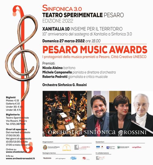 Celebriamo i protagonisti internazionali della musica: Nicola Alaimo baritono; Michele Campanella pianista e direttore d’orchestra; Roberta Pedrotti, giornalista, critico musicale, fondatrice de L’ape musicale