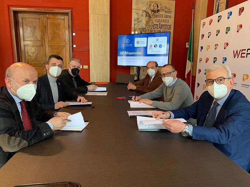“BE-REsponsible” – vincitore del bando promosso dal Ministero, che ha assegnato il contributo di 287.000€ – prevede una serie di iniziative che saranno realizzate dall’Amministrazione, ente capofila del progetto, in collaborazione con Prefettura di Pesaro e Urbino, Questura di Pesaro e Urbino, Unione dei Comuni “Pian del Bruscolo”, Università degli Studi di Urbino “Carlo Bo” e Croce Rossa Italiana – Comitato di Pesaro ODV, come previsto dall’accordo di partenariato e collaborazione siglato stamattina in Comune.