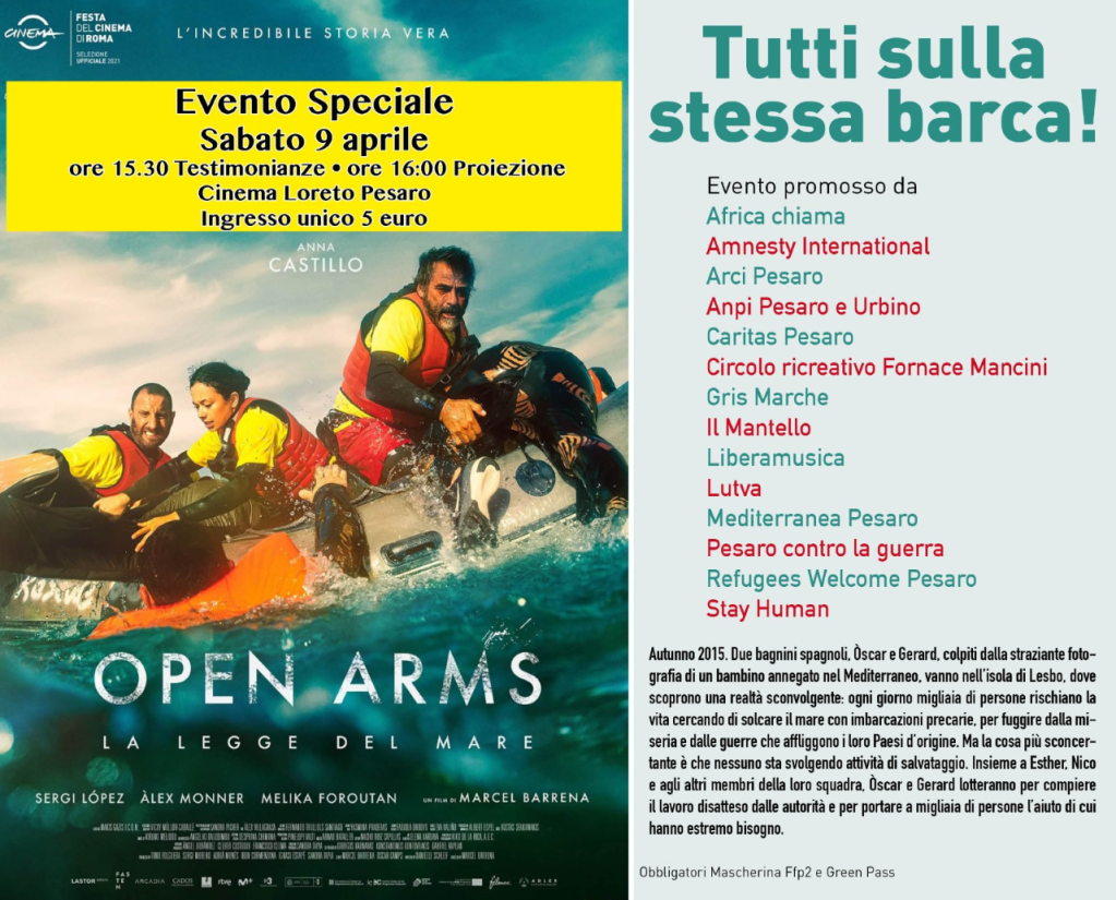 Africa Chiama, Amnesty International Pesaro, Arci Pesaro-Urbino, Anpi Pesaro-Urbino, Caritas Pesaro, Circolo ricreativo Fornace Mancini, Gris Marche, Associazione il Mantello, LiberaMusica, Lutva, Mediterranea Pesaro, Pesaro contro la guerra, Refugees Welcome Pesaro, Stay Human
