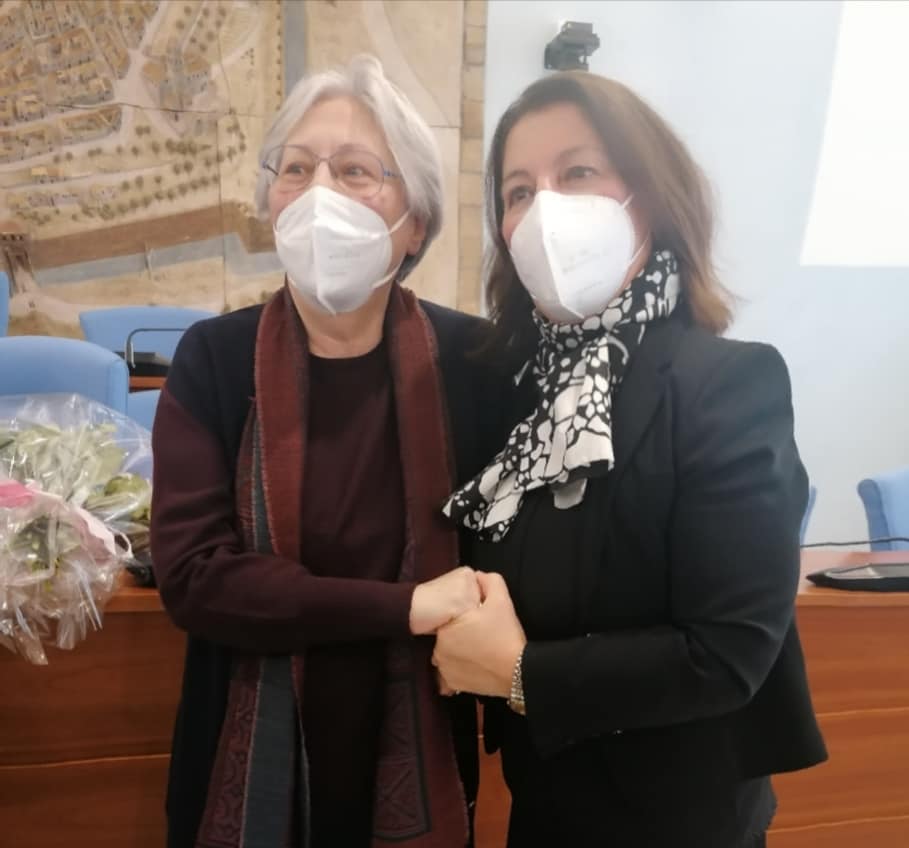 Maria Teresa impersona l’immagine reale e coerente di una vita spesa al servizio della comunità che rappresenta, la figura vivente del volontariato oserei dire di cura, attenzione agli ultimi e alle persone ai margini della società. «In tanti anni al Ceis, – conclude Mattioli – ha rappresentato e rappresenta ancora oggi per la nostra città, un emblema di onestà intellettuale, di lealtà, condivisione con gli altri, il mettere a disposizione il suo sapere per curare e aiutare ad uscire dal buio a tante persone sofferenti o che avevano perso il vero senso della vita. Una mano sempre tesa per l’aiuto e il donarsi all’altro con spirito di cristiano altruismo. Oggi la sua stretta di mano, mi ha riempito il cuore di quella forza incredibile insita in Teresa….una persona che ha posto il bene comune a garanzia anche del bene individuale ».