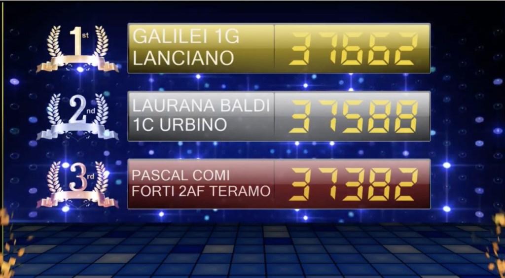 Campioni d’Italia invece, gli studenti della 1^G del Liceo Scientifico “Galileo Galilei” di Lanciano e medaglia di bronzo alla 2^AF dell’IIS “Pascal – Comi – Forti” di Teramo.
