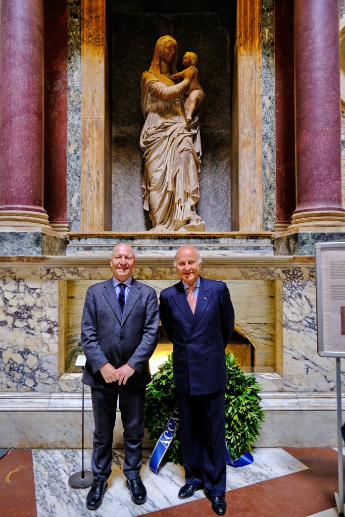 2. L’ accademico Andrea Ligi e l’ambasciatore Giorgio Girelli, anch’egli accademico, dinanzi alla tomba di Raffaello durante la cerimonia.