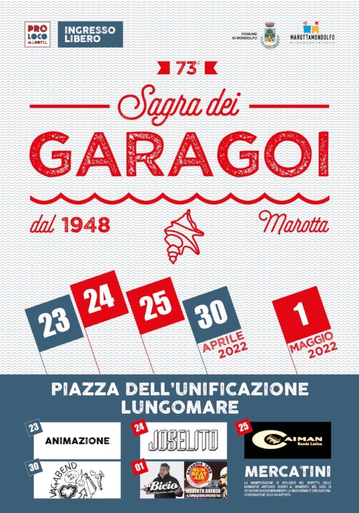 Dopo lo stop forzato per la pandemia torna l’attesissima Sagra dei Garagoi. L’evento più longevo e rappresentativo di Marotta, che quest’anno giunge alla 73esima edizione, è in programma il 23, 24, 25, 30 aprile e 1 maggio. Cinque giornate all’insegna del giusto, delle tradizioni e del divertimento, durante le quali non mancherà attenzione al sociale. Ad organizzare la Sagra la Pro loco di Marotta con il patrocinio e la collaborazione dell’Amministrazione comunale.