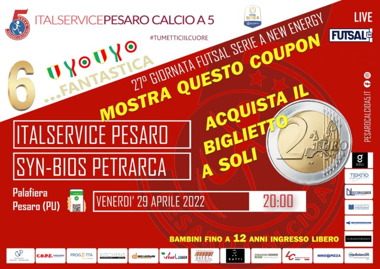 PESARO – Big match in arrivo: venerdì alle 20 c’è Italservice Pesaro contro Syn-Bios Petrarca. Dove? All’interno di un PalaFiera che la società biancorossa desidera riempire di tutto l’affetto possibile. La capolista marchigiana se la vede con il sodalizio veneto, che ha vissuto gran parte della stagione in cima alla classifica. Ecco perché la prossima sfida assume un coefficiente di difficoltà altissimo ed è il motivo principale per cui l’Italservice ha chiamato a raccolta tutti i suoi tifosi con un’inedita promozione.