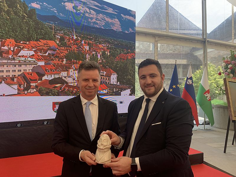 Si solidifica, pensando a nuove progettualità, il più antico gemellaggio della città: quello di Pesaro con Lubiana. A rinnovare il legame, ieri, è stata la serie di incontri svolti da Marco Perugini, presidente del Consiglio comunale, nella capitale slovena in occasione del 77° anniversario della Città, del Giorno della Vittoria e dei 150 anni dalla nascita dell’architetto sloveno Jože Plečnik, ricorrenze celebrate con un Consiglio comunale solenne.