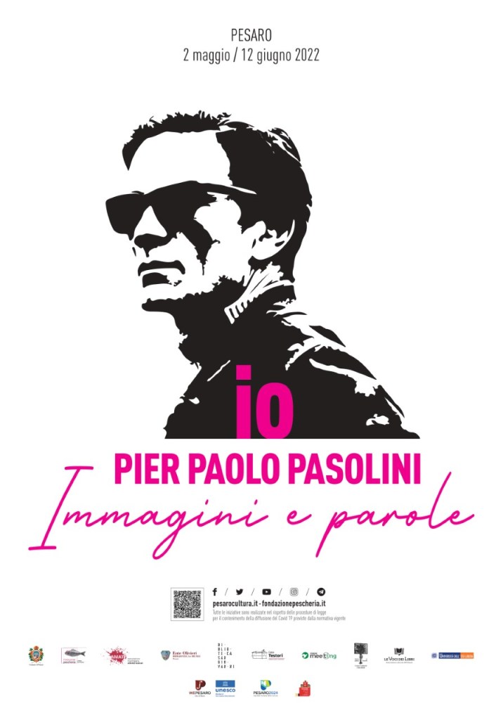 ‘Io, Pier Paolo Pasolini. Immagini e parole’ è una rassegna che nasce sotto l’egida di ‘Pesaro Città che legge’ ed è promossa da: Comune di Pesaro/Assessorato alla Bellezza, Fondazione Pescheria, Amat, Ente Olivieri-Biblioteca e Musei Oliveriani, Biblioteca San Giovanni, Meeting Rimini, Casa Testori, Centro Culturale Città Ideale Pesaro, Le Voci dei Libri associazione culturale APS, Università dell’Età libera/sezione di Pesaro.