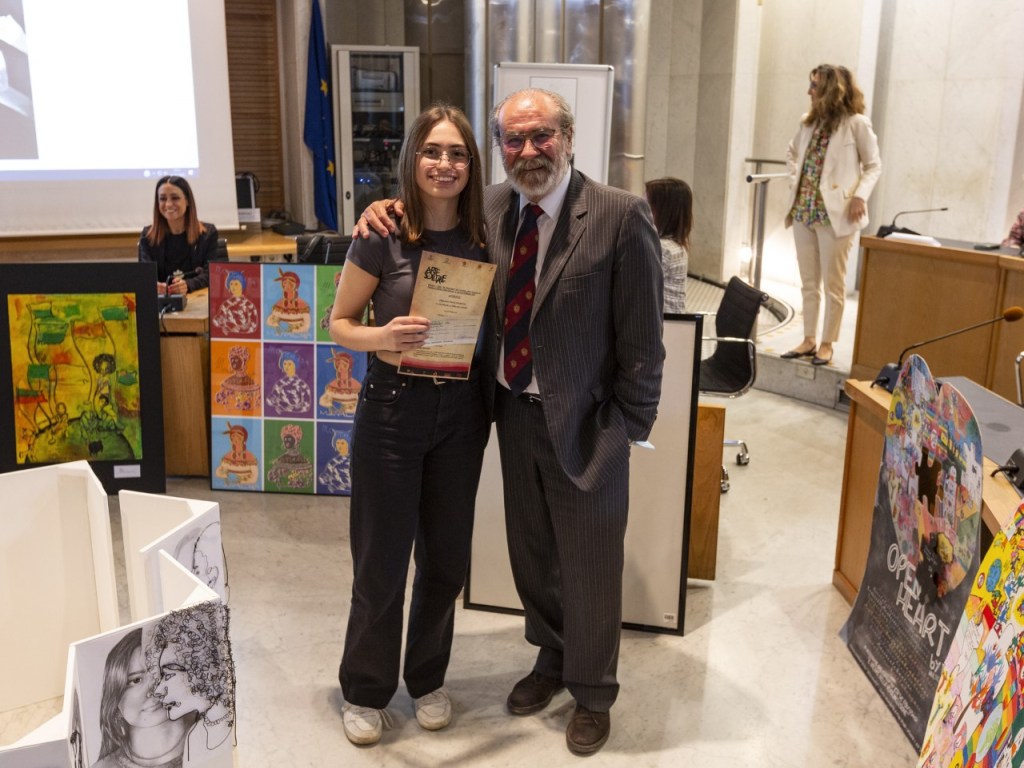PROGETTO – Il concorso ha voluto sensibilizzare le nuove generazioni sull’inclusione in senso lato: dalla lotta contro il bullismo alle azioni per rendere i luoghi accessibili, eliminando le barriere che impediscono la fruizione completa degli eventi culturali e sportivi, oltre alla possibilità di vivere esperienze in un’ottica di turismo per tutti. Patrocinata dal Consiglio regionale, dalla Provincia di Pesaro e Urbino e dal Comune di Pesaro, l’iniziativa ha messo l’accento sulla «vera inclusione, che non vede il colore della pelle, le difficoltà fisiche e intellettuali, le scelte di appartenenza sessuale, di etnia, di religione; agisce per eliminare barriere fisiche, mentali e culturali. Siamo tutti parte di un unico mondo, uomini e donne. La vera inclusione vede cittadini e cittadine, uomini e donne di un mondo unico e solidale». Le opere candidate dagli studenti sono state realizzate in piena libertà stilistica e su qualsiasi supporto. Il premio finale ha visto il coinvolgimento dell’artista Giovanni Contardi, ex studente del liceo Marconi di Pesaro, che ha fatto della sua passione per il cubo di Rubik un’arte, vincendo campionati e diventando famoso per le sue creazioni, tra cui ritratti di personaggi come Will Smith e David Guetta. Proprio con i cubi di Rubik, Contardi ha realizzato il ritratto della vincitrice: proiettato nella sala Pierangeli il filmato della realizzazione del lavoro. La ragazza riceverà
