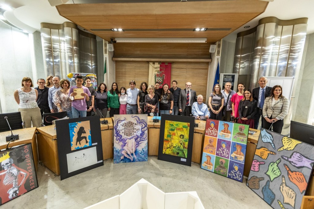 PESARO – Premiati i vincitori del concorso d’arte figurativa «Il valore della vera inclusione», promosso dalla onlus Piattaforma Solidale di Pesaro e rivolto agli studenti di cinque istituti superiori del territorio provinciale: Itet Bramante Genga di Pesaro, Istituto omnicomprensivo statale Della Rovere di Urbania, liceo artistico Mengaroni di Pesaro, Scuola del libro di Urbino, liceo artistico Nolfi Apolloni di Fano. Si tratta delle scuole che nel luglio scorso, insieme alla Provincia di Pesaro e Urbino e a tre ordini professionali provinciali (Ordine degli Architetti, Ordine degli Ingegneri e Ordine dei Geometri) hanno sottoscritto un protocollo d’intesa proposto da Piattaforma Solidale per dar corso ad iniziative, interventi e azioni in materia di abbattimento delle barriere architettoniche. La vincitrice è Arianna Carboni del liceo artistico Mengaroni di Pesaro (quarta B), con l’opera intitolata “Anche io” (acrilico su foglio). Secondo e terzo premio assegnati a lavori di gruppo, rispettivamente alla classe “prima A” del liceo artistico Nolfi Apolloni di Fano (con l’opera “Nell’uno l’altro”) e alla classe “terza G” dell’Itet Bramante Genga di Pesaro (con l’opera “Il privilegio di essere diversi”). Menzione d’onore per Jason Antonelli (Istituto Della Rovere di Urbania) e Nicole Torcoletti (Scuola del libro di Urbino). «Un’iniziativa significativa – ha detto il presidente della Provincia Giuseppe Paolini – all’interno di un percorso portato avanti insieme alle scuole, grazie alla determinazione di Piattaforma Solidale e del suo presidente Massimo Domenicucci. E’ emersa la sensibilità sul tema da parte di dirigenti scolastici e insegnanti, dagli studenti si è riscontrata grande partecipazione. Una società civile si vede dall’attenzione verso i più deboli: ancora c’è molto lavoro da fare, nessuno deve restare indietro. Saremo sempre al