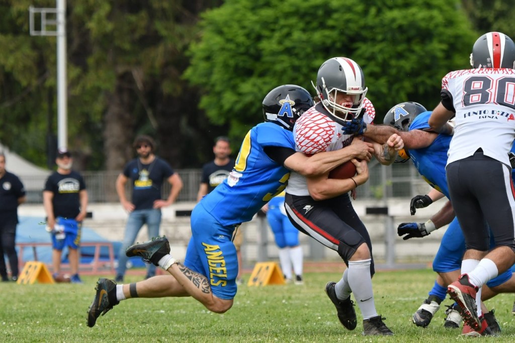 La regular-season dei Ranocchi Angels si conclude con un ko casalingo al cospetto della capolista Roosters Romagna (12-28 il finale). Ai playoff i pesaresi pescano così i Blue Storms di Busto Arsizio, con sfida programmata nel primo week-end di giugno. E’ stata una settimana complessa per il club del presidente Fabbri dopo l’addio inaspettato di coach Jack Campbell. Lo staff ha dovuto riorganizzarsi, affidando la squadra ad Alessandro Angeloni: “Abbiamo dovuto reimpostare la difesa perché Jack era anche il nostro defensive coordinator: Abbondanza e Lombi si sono presi la responsabilità del reparto, mentre io ho preso la guida della squadra – racconta Angeloni -. Non è stato facile, in più i Roosters sono un gruppo compatto. I nostri avversari sono partiti meglio, indirizzando la gara nel modo a loro più congeniale”.