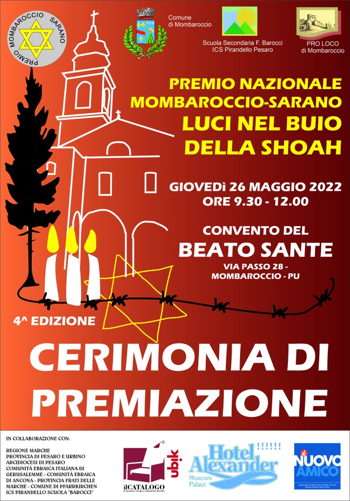 Si conclude domani alle ore 9.30 la 4^ edizione del concorso nazionale per le scuole “Luci nel Buio della Shoah”, bandito dal Comune di Mombaroccio in collaborazione con l’arcidiocesi di Pesaro. Oltre 300 gli studenti attesi da ogni parte d’Italia: Sicilia, Piemonte, Puglia, Toscana, Basilicata… Per loro è previsto anche un collegamento speciale con la senatrice e vita Liliana Segre.
