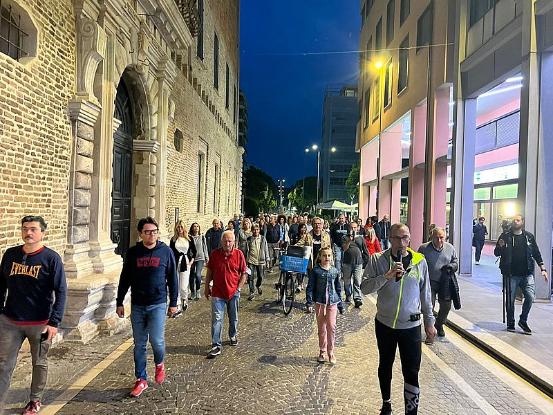 Ieri sera la camminata per le vie del centro storico per far conoscere il sito pesarochecambia.it: