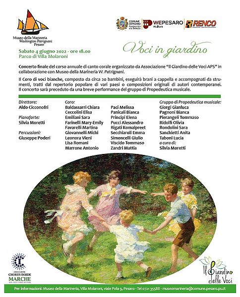 Sabato 4 giugno alle ore 18, il concerto finale del corso annuale di canto corale organizzato da Associazione “ll Giardino delle Voci APS” in collaborazione con Museo della Marineria W. Patrignani.
