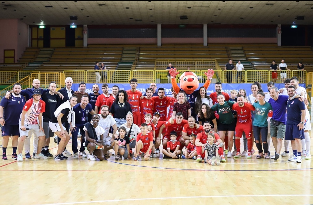 Tutto ciò a seguito di un primo tempo spettacolare, sbloccato da Salas dopo appena 85 secondi. Raubo ha pareggiato, quindi Taborda si è inventato un gol in rovesciata fantastico che ha fatto impazzire il palas e ha aggiornato il punteggio sul 2 a 1. Prima del riposo Bolo e ancora Taborda hanno allungato sul 4 a 1. Nella ripresa ritmi più blandi. Salla ha trovato il 4 a 2, Borruto ha firmato il 5 a 2 e ancora Salla ha sancito il definitivo 5 a 3. Alla fine una bella foto di gruppo fra pesaresi e falconaresi ha suggellato una splendida serata di futsal tutto in salsa marchigiana.