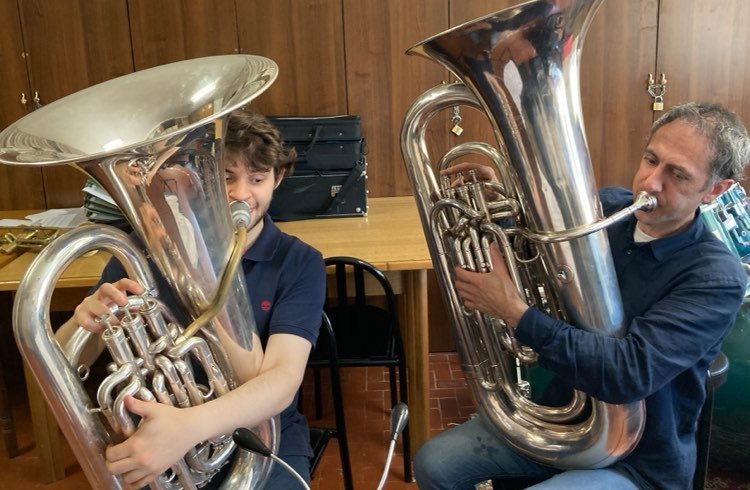 GRADARA (PU) – Domenica 12 Giugno 2022 la Scuola di Musica dell’Orchestra di Fiati di Gradara ha promosso un’interessante Masterclass sulle peculiarità tecnico – interpretative dei Brass, ospitando il Prof. Gianmario Strappati, Ambasciatore di Missioni Don Bosco per la musica nel mondo e concertista internazionale. L’artista docente tra l’altro presso il Conservatorio G. Verdi di Ravenna ha di recente tenuto un recital presso la Cappella Barocca dell’Ambasciata italiana a Praga e presso la Thomas Kirche di Lipsia dove ha eseguito la seconda Suite per Tuba sola, sulla Tomba di J. S. Bach. Alla masterclass hanno partecipato musicisti provenienti da San Marino, Rimini, dalla Provincia di Pesaro – Urbino ecc…Nell’occasione sono state eseguite musiche di A. Holley, D. Gillingham, S. W. Beatty ecc… per Bassotuba ed Euphonium. Ancora una volta un appuntamento artistico – didattico di alto profilo, organizzato dal Prof. Luca Di Stefano (Direttore e concertatore dell’Ensemble orchestrale), che ha creato un felice sodalizio tra analisi, esecuzione ed esperienze che hanno particolarmente coinvolto i presenti.