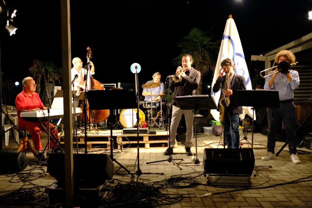 L’orchestra jazz con musicisti professionisti di caratura nazionale con alla voce vocalist Paola Lorenzi, frontman ed arrangiatori sono Fabio Petretti al sax e Massimo Morganti al trombone, Giuseppe Zanca alla tromba, al basso Paolo Ghetti, e solitamente vediamo alla batteria il noto jazzista Massimo Manzi, che però solo in questa occasione, per impegni professionali, ha lasciato il posto al Luca Orselli, il tutto con la maestria, estrosità e passione del pianista dal quale prende il nome l’orchestra, il pesarese Aldemaro Moltedo.