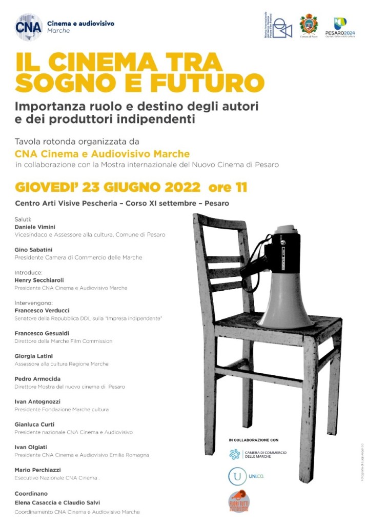 Iniziativa organizzata dalla CNA alla Mostra del cinema di Pesaro per la difesa di un presidio culturale. Partecipano il senatore Verducci, Regione Marche e il presidente nazionale di CNA Cinema.
