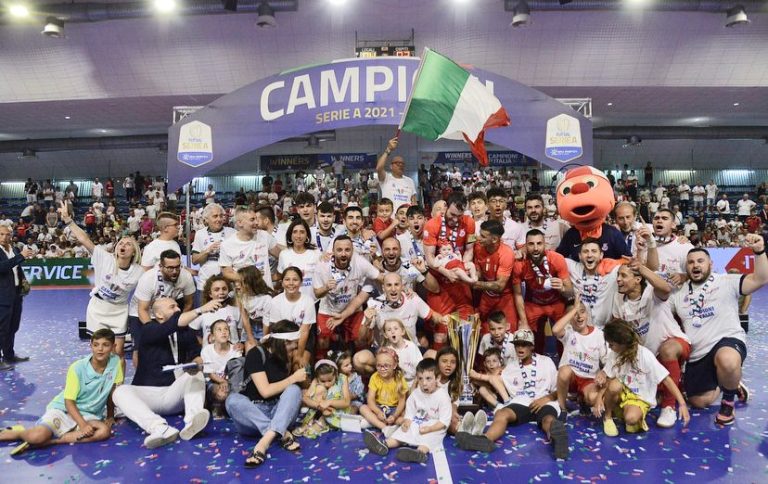 PESARO – CAMPIONI D’ITALIA, CAMPIONI D’ITALIA, CAMPIONI D’ITALIA! L’Italservice Pesaro è campione d’Italia per la terza volta nella propria storia, centrando così un triplete storico: Scudetto, Coppa Italia, Supercoppa. I biancorossi del presidente Lorenzo Pizza superano 4 a 3 una infinita Feldi Eboli nella finalissima tricolore e fanno esplodere di gioia i 2000 tifosi presenti. Complimenti al sodalizio campano, avversario degno di questi palcoscenici e capace di spingere all’estremo i campioni dell’Italservice. E complimenti, ovviamente, ai nostri beniamini. Sono mostruosi.